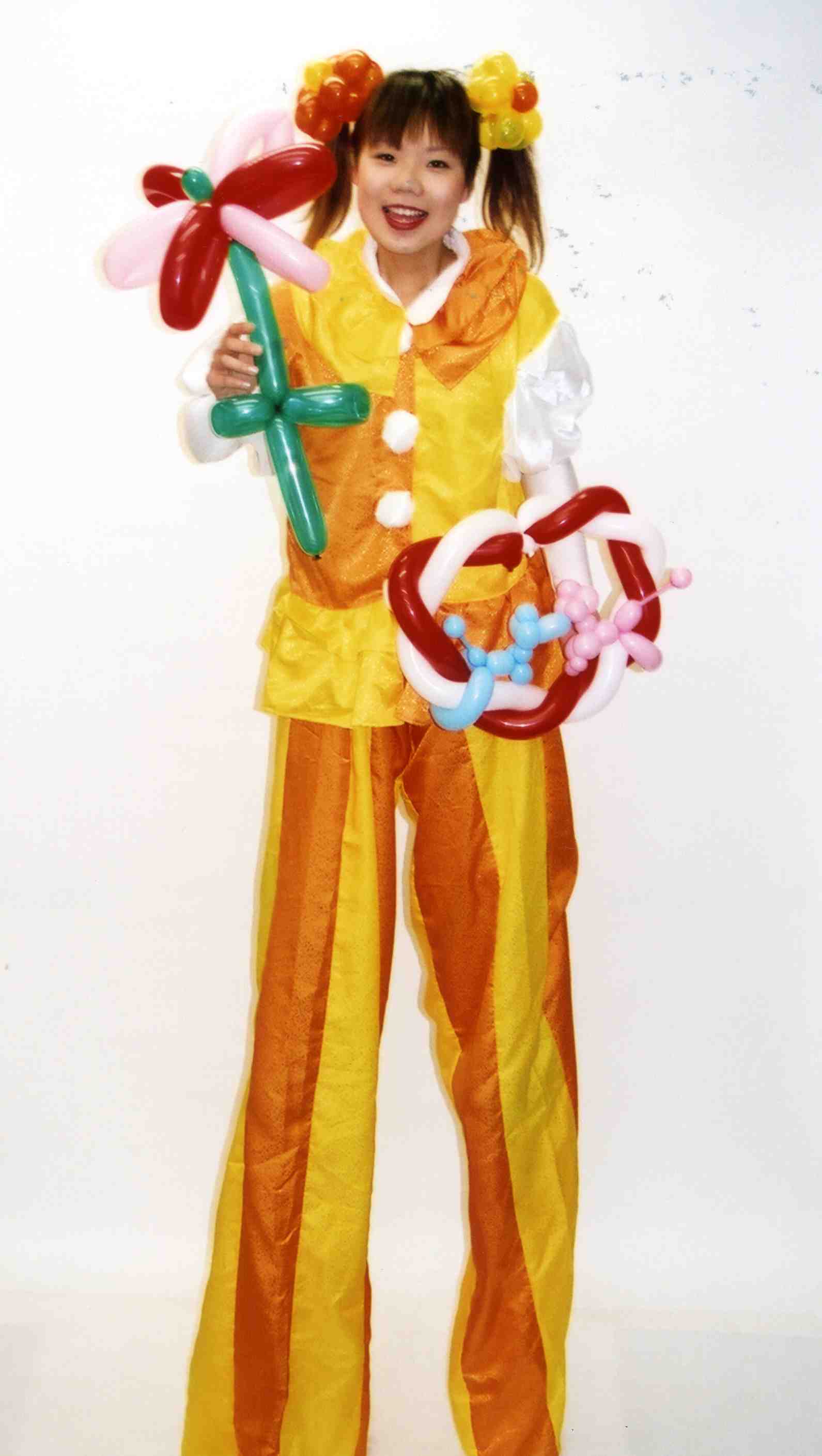身長2メートル以上の足のながいお姉さんになって風船プレゼントやお手玉など披露します。ショーでもグリーティングでもパレードでもなんでもOK!!